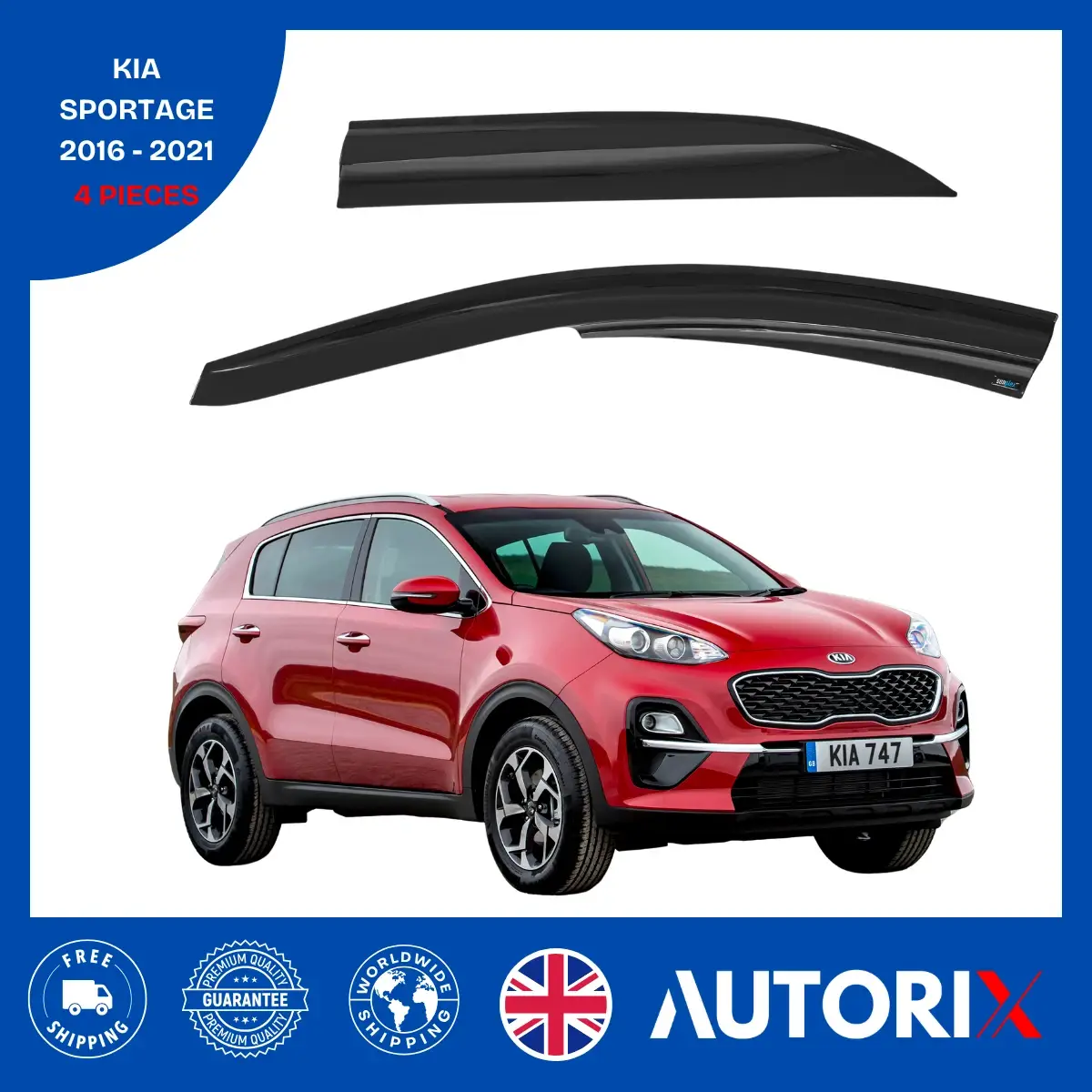 KIA SPORTAGE 2016-2021 EXTERNAL FIT WIND RAIN SUN SMOKE GUARD DEFLECTORS 4PCS