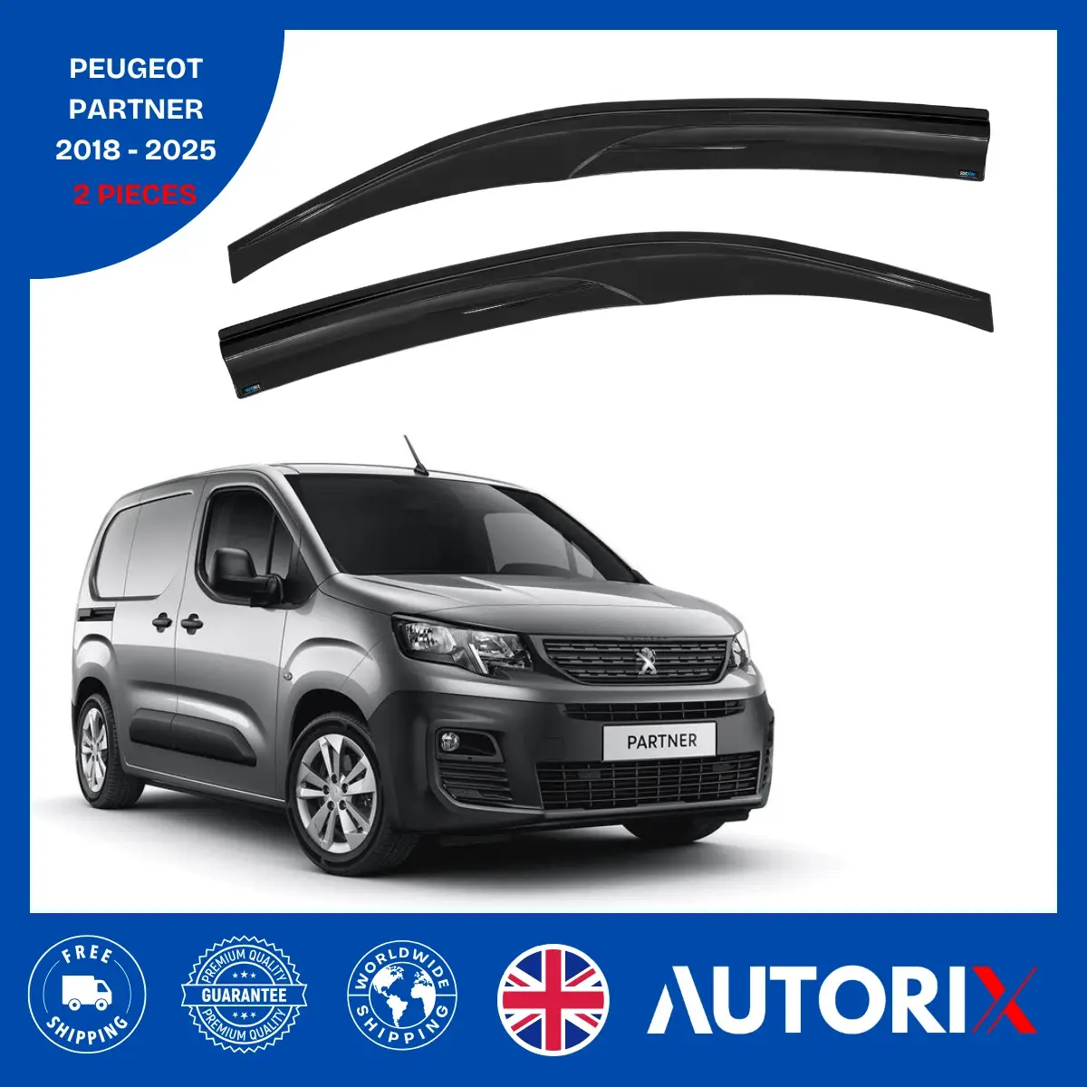 Be the first to review “PEUGEOT PARTNER 2018-2025 EXTERNAL FIT WIND DEFLECTORS RAIN SUN SMOKE GUARD 2PCS”