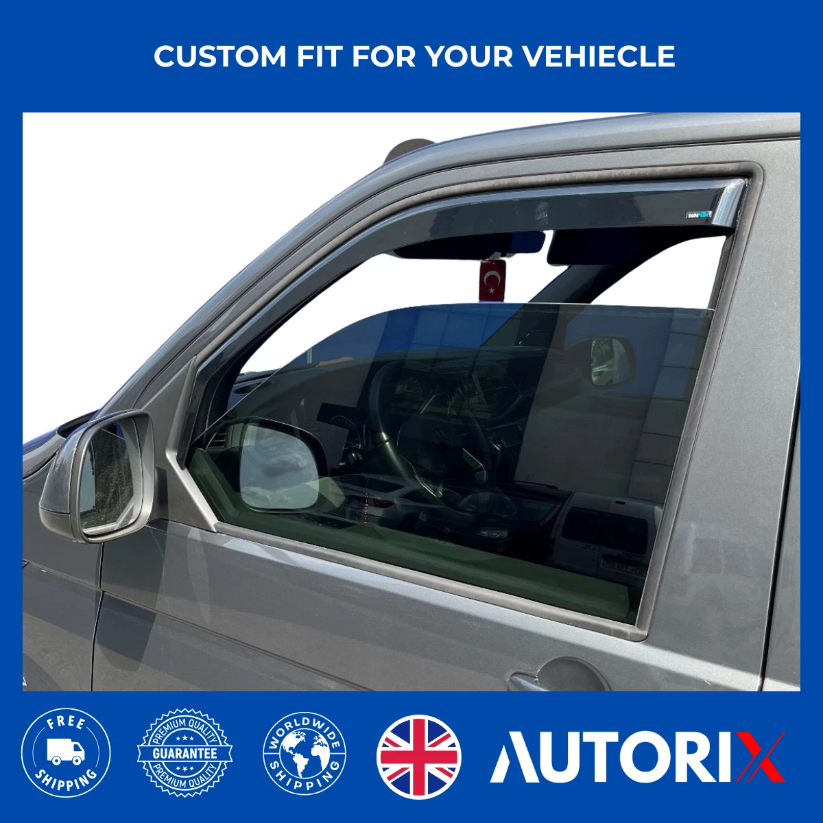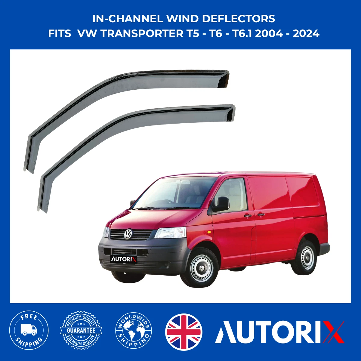 Upgrade your driving comfort with these custom-fit in-channel wind deflectors, designed specifically for the VW Transporter. They allow you to drive with the windows slightly open in rain or wind while reducing wind noise and improving airflow.